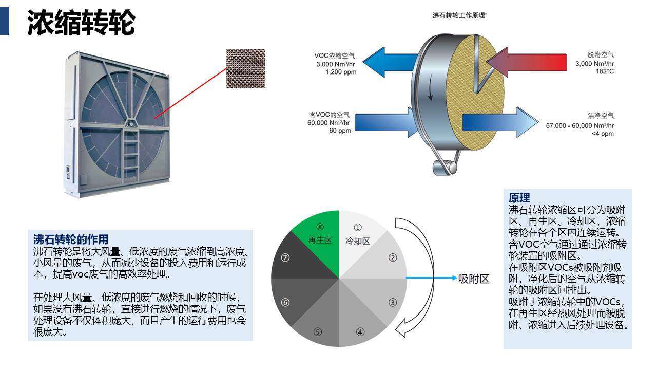 • 心脏部分的浓缩转轮因为在高温下烧结处理而成,完全是无机物的结合体,如果发生蜂窝通路堵塞时,可以进行水洗。另外,分子筛转轮也可以根据实际情况进行高温活化(需要事先商定)。